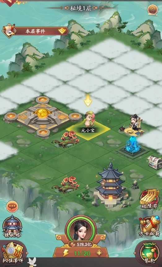 3. 地图事件:地图内包括迷雾、怪物、宝箱、商铺、幻阵等事件。找出地图内所有聚灵阵可前往下一层秘境。