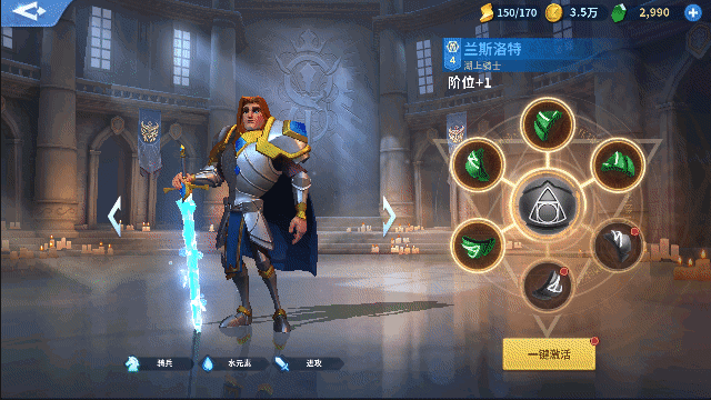 英灵升阶可以提升英灵的多项属性值。激活符文需要使用时光之井中产出的升阶材料。每激活一个符文都可以获得属性提升(物攻、法攻、物防、法防等),激活6个符文后,可使用金币完成一次升阶,获得带兵数量提升。