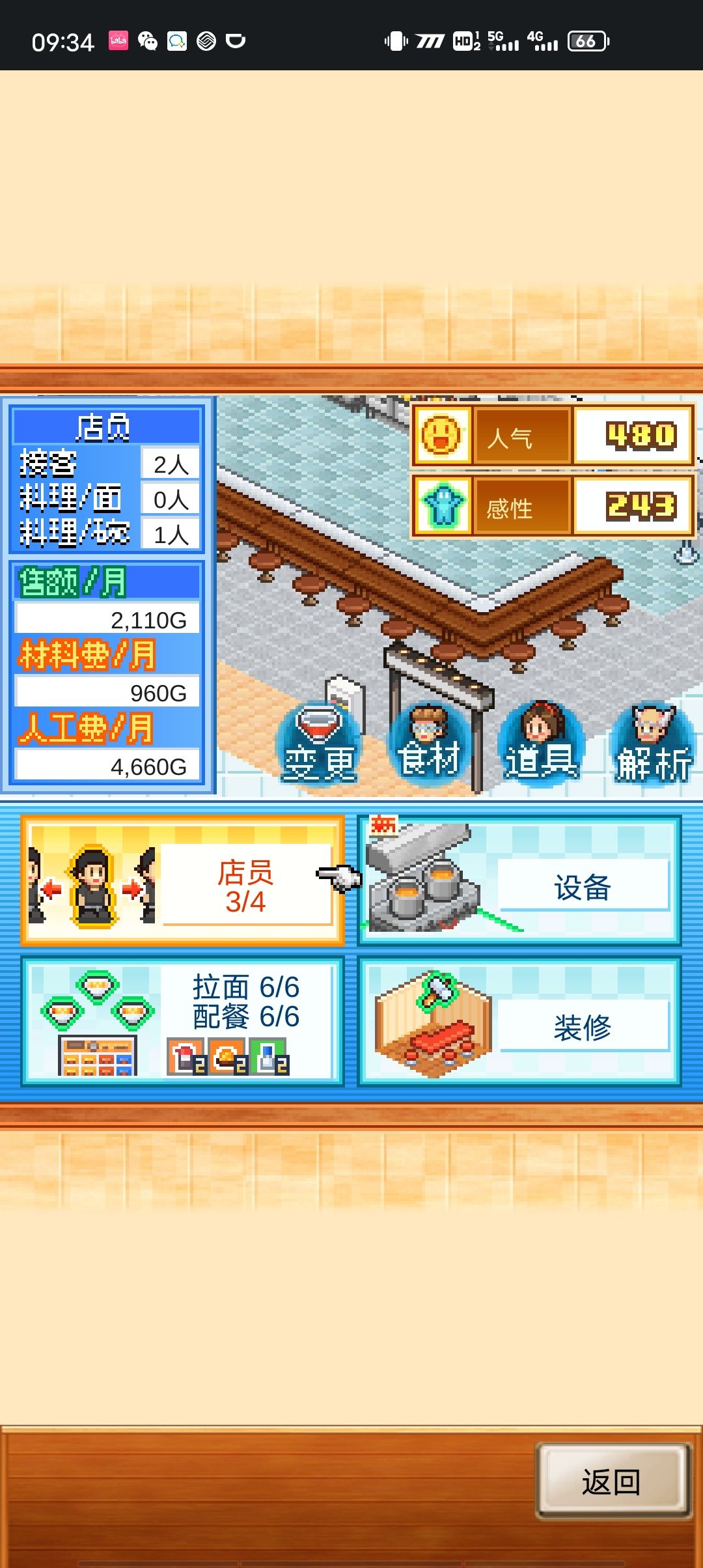 下面的4个项目店员、拉面配餐菜单、设备、装修,分别可以从左侧菜单的其他按钮进入。