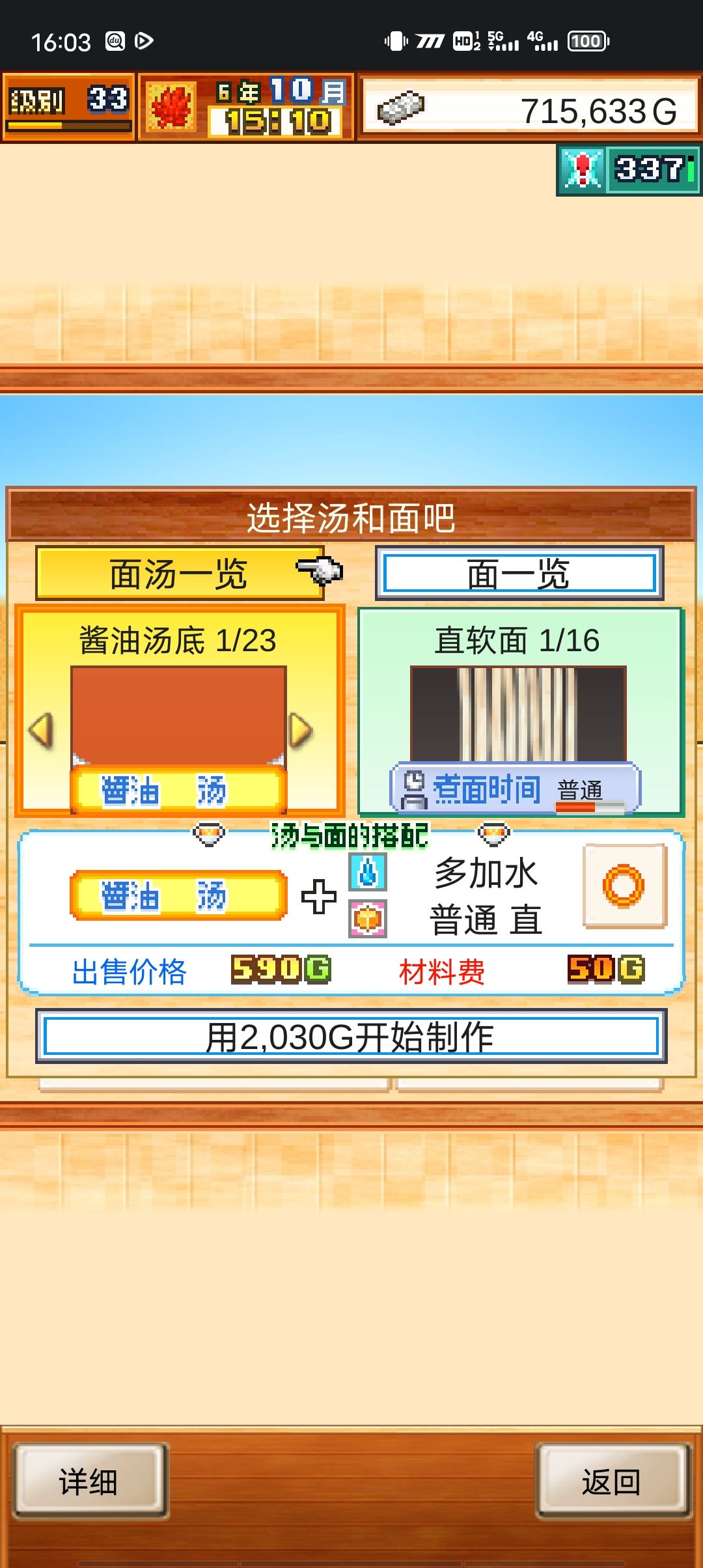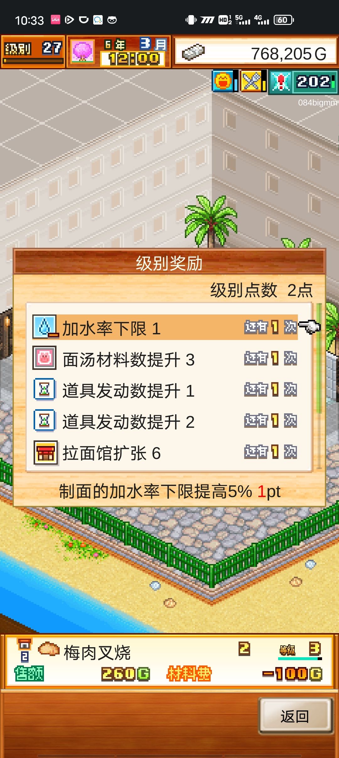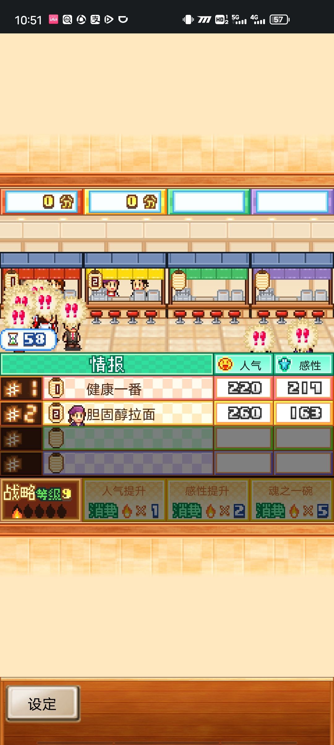 tips:本作和大航海一样,点击级别时间和金币处可以进行总店和拉面馆的切换显示,节省时间。