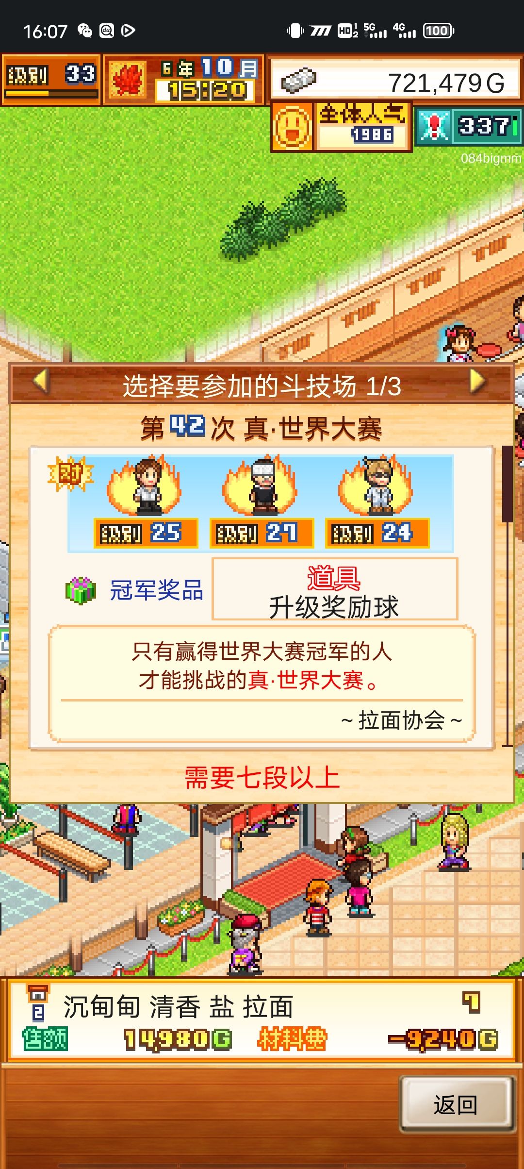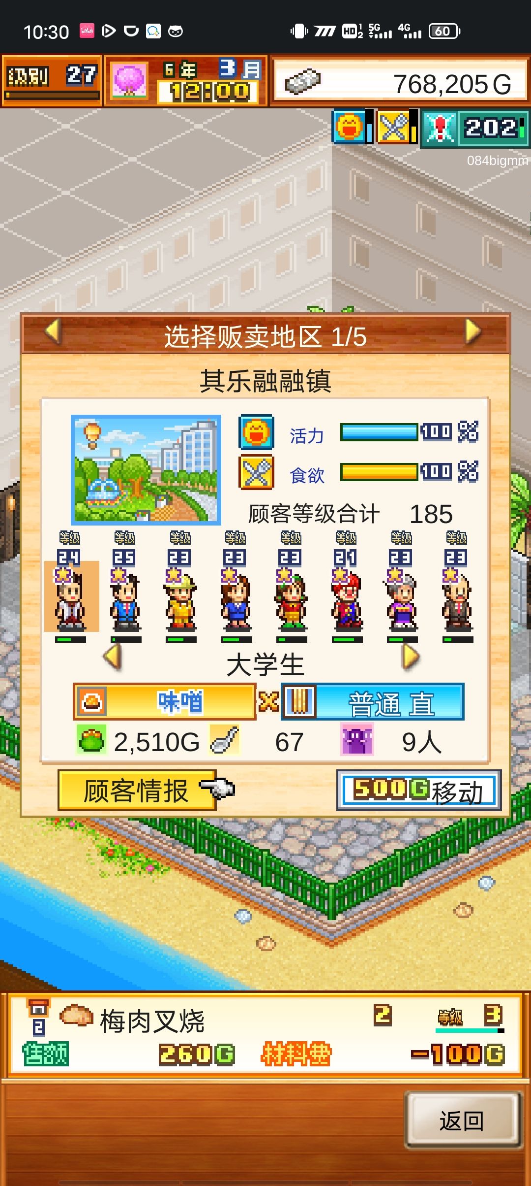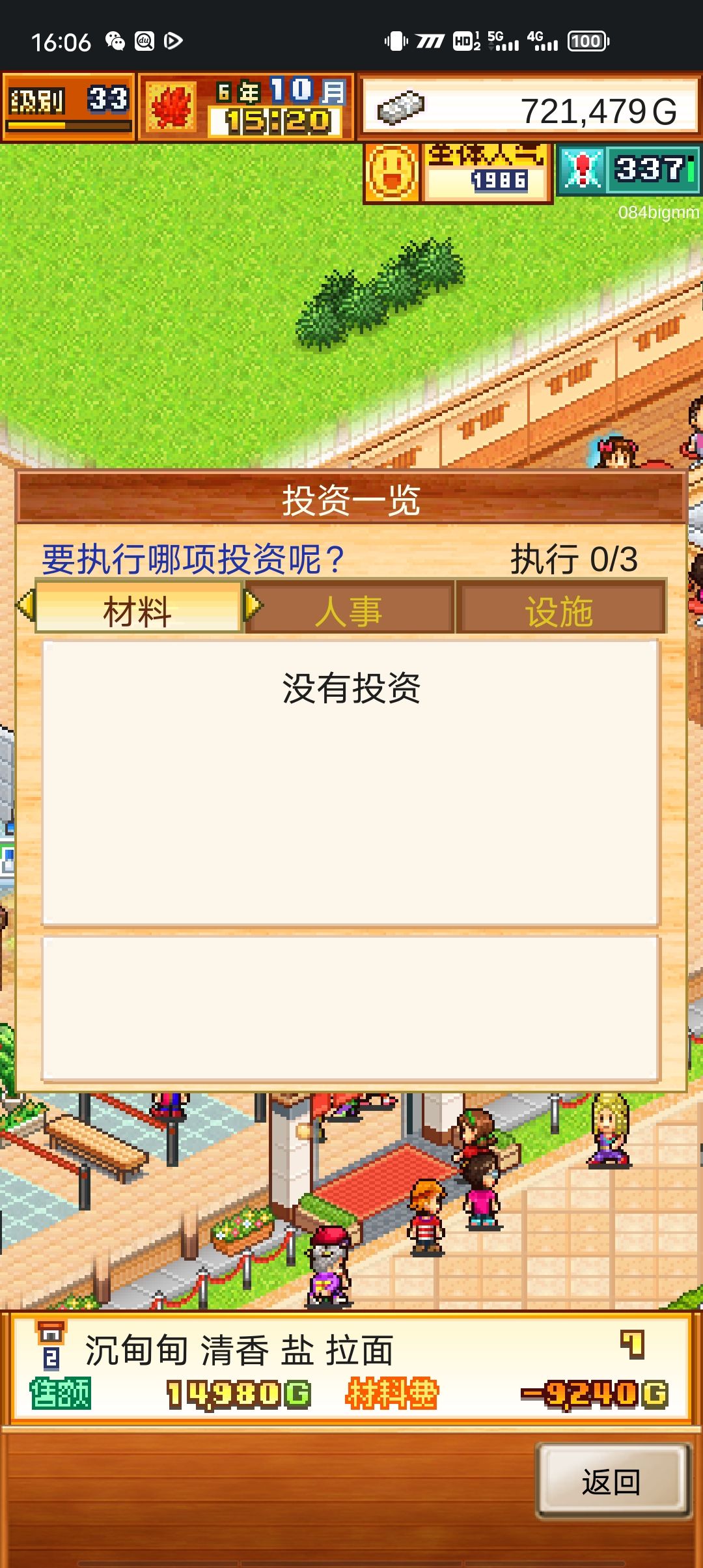 tips:本作和大航海一样,点击级别时间和金币处可以进行总店和拉面馆的切换显示,节省时间。