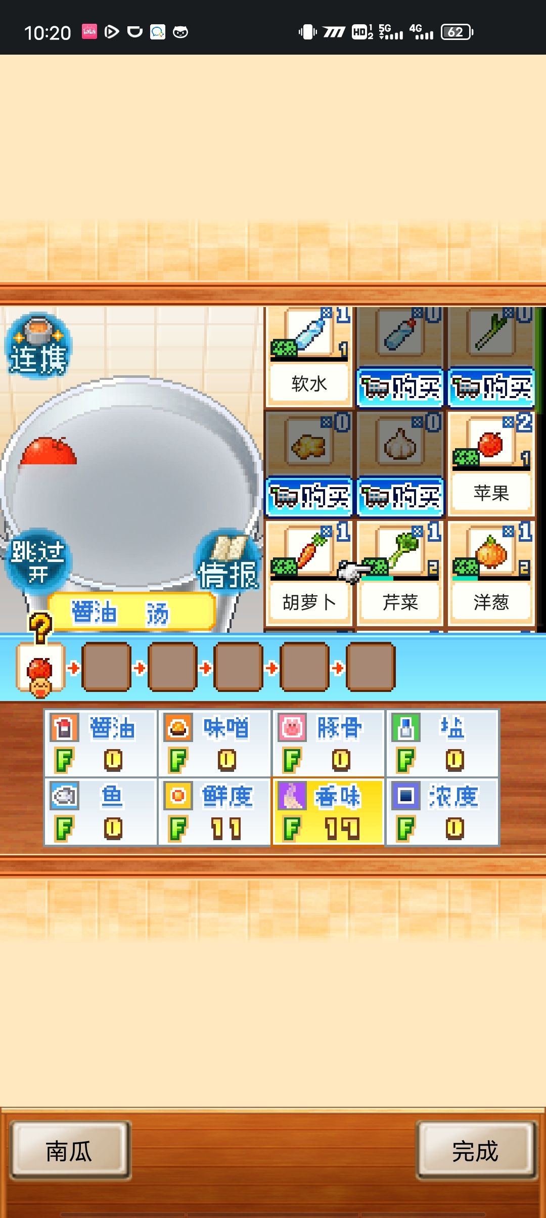 在游戏推荐过程中,能够得到固定的面和汤,也够基本的游戏推进。