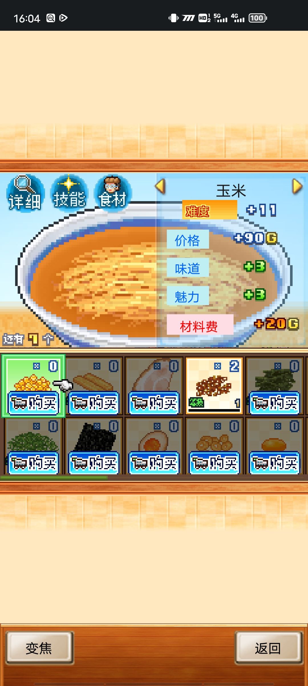 每种配料对拉面的6维是有一定加成的,同时也影响了价格,制作难度还有成本费。