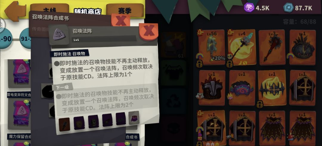 这两个图纸是可以在商店买到,买到以后遇到过不去的可以跑过去放下一个法阵,隐身撤退,在远处等着就行了。召唤物上限要配合法阵与怪物的距离,太远了的话还没跑过去就被顶掉了,可以放近一点或者提升召唤物上限。