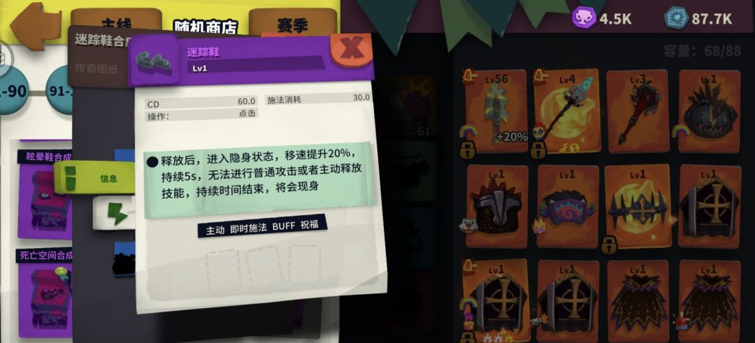 下面说一下,两种情况。在有置换石兑换码的情况下,换主手武器,自爆魔杖。如果没有兑换码或者懒得弄,可以提线木偶过度,在商店刷新买图纸自制,图纸400,注意预留购买的钻石。