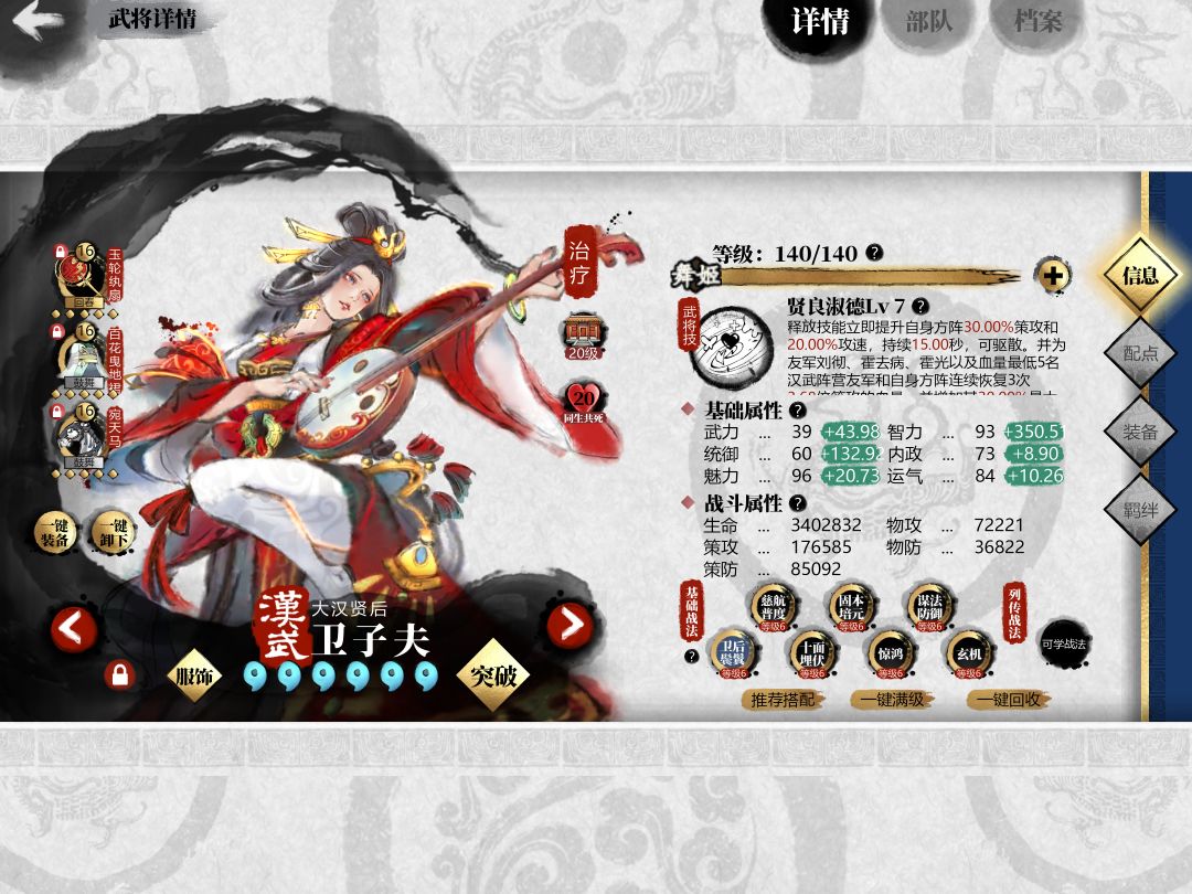 7.策士中只有刘彻和吕雉两个C。刘彻有95%的概率免疫技能伤害,而且还有卫子夫和平阳公主两个大奶保驾护航,生存能力很强。所以把投石给吕雉,增加吕雉生存能力。
