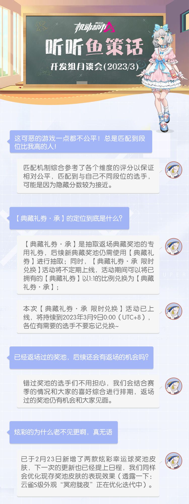 一直以来,开发组对各大官方自媒体账号、官方社区、社群以及私信密切关注,收到了大家的反馈和建议,在此对选手们的支持表示诚挚的感谢!