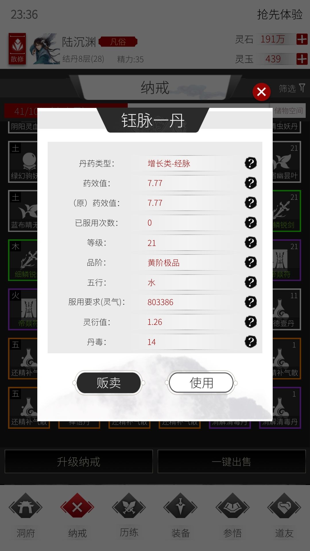 经脉丹,水属性,仅仅只需80w灵气,增长经脉7.77