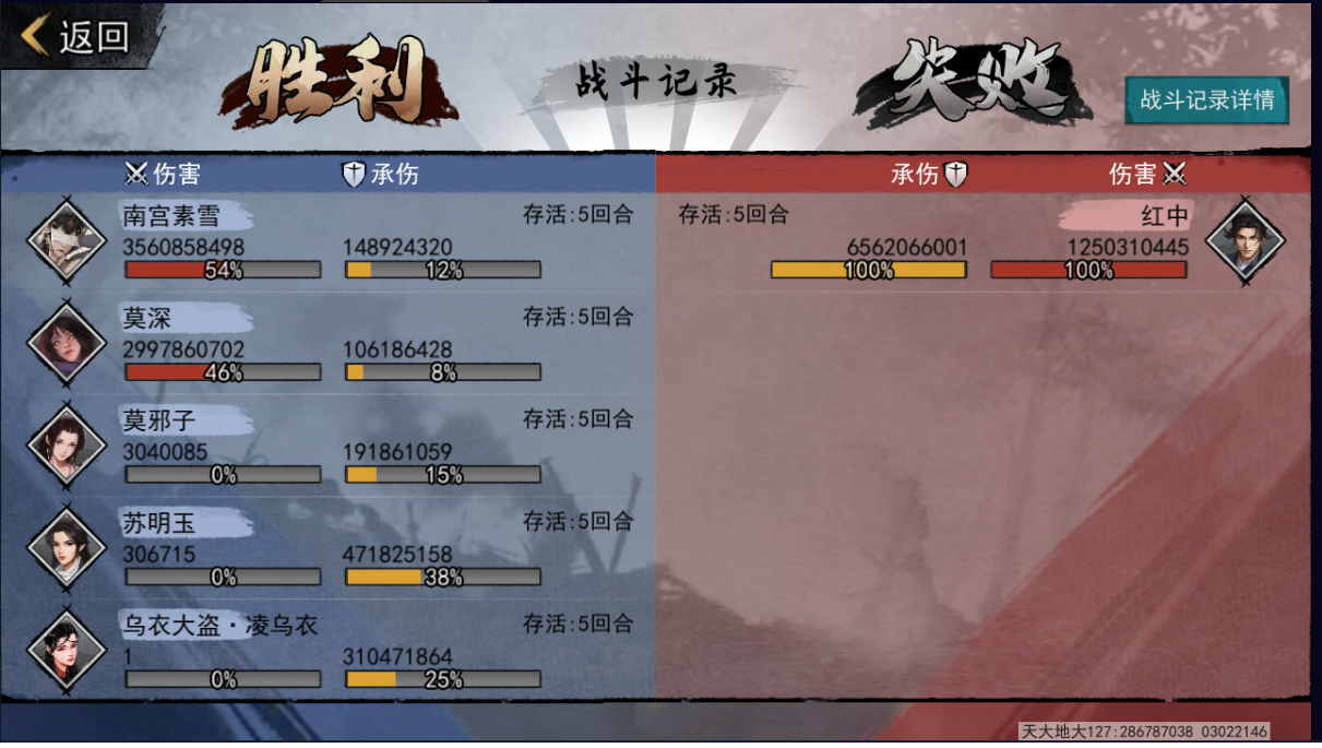 第二回合就打到了26w,然后后面南宫命中下降,就输出下来了,应该打一个45回合必中的能有巨大提升。