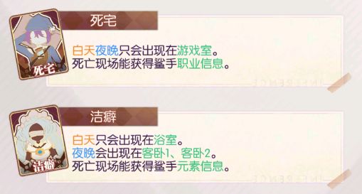 一些身份会在特定的时间进入特定的房间内,还有一些身份会整天待在同一个房间里。