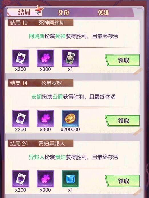 结局奖励:活动货币、SR灵魂碎片、(怪兽祭/秘境/组队/公会副本)挑战券、金币、4级宝石。