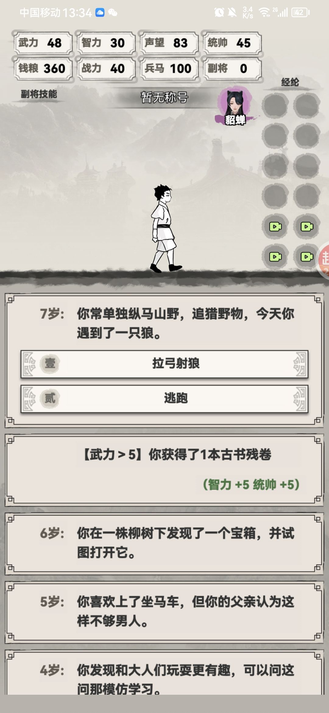 选吕布线,啥东西都不用带,直接随机分配属性,然后猛点,到抉择野狼那个选项,选逃跑,直接就死了。因为每重生一次会给一次送礼物的机会,所以光速死亡选个最高级的宝物,然后去送给红颜,很快就满好感了。