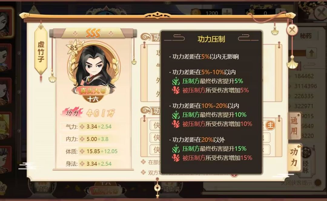 此外,还有一个随着功力属性同时上线的新机制——功力压制;