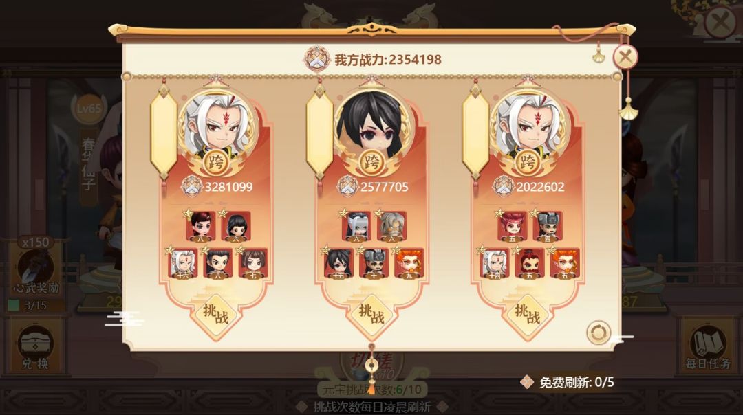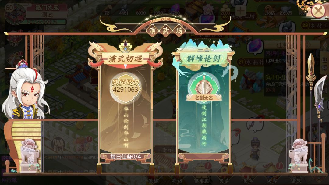 新界面将<演武切磋><群峰论剑>优化为两种色彩的功能入口,比起之前的版本更加醒目、便于选择;