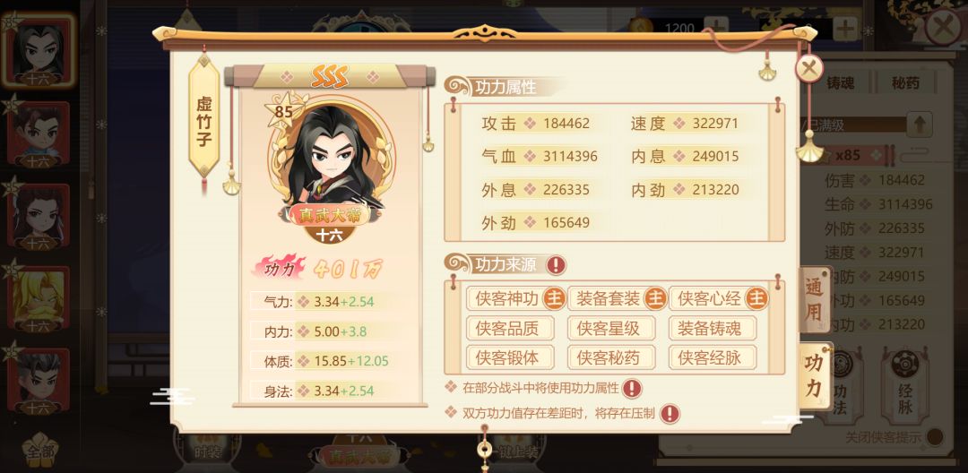 功力属性的来源,则会根据侠客神功、品质、星级等多方面的数值综合得出,优化了玩家在部分侠客培养方向上产生的一些问题,使得玩家用心培养过的每位侠客都能在竞技场中大显身手。