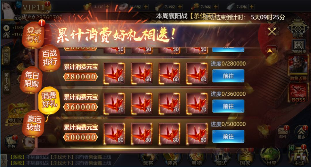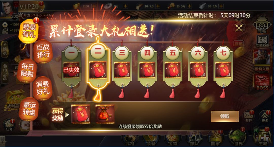 活动期间,每天可使用元宝购买当日的限时礼包,每档限购买1次。
