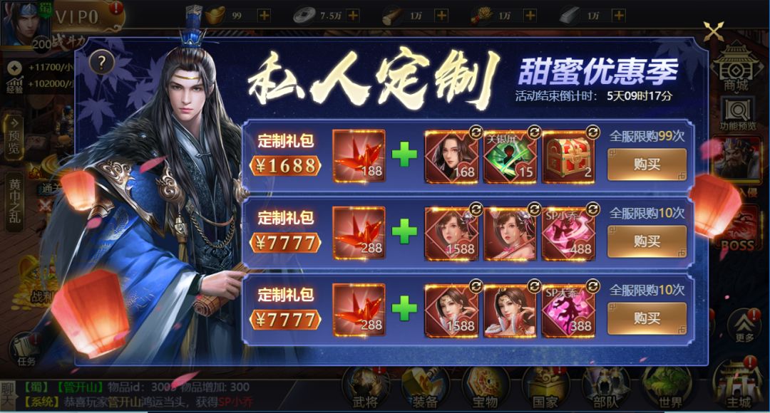 7.定制礼包:限时开启,SP小乔、SP大乔加入,极品道具任意搭配!