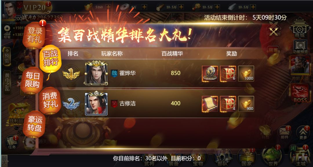 获得期间累计获得百战精华,赢取排名大奖!