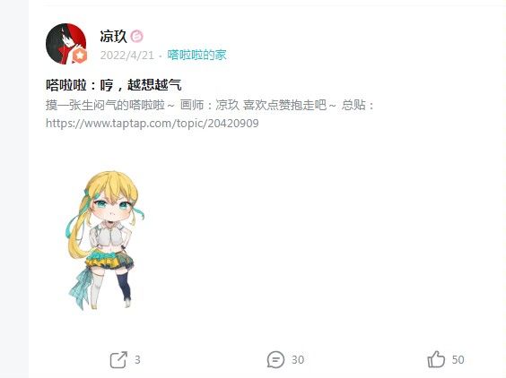 但是后续问原画师,并不知道TapTap,也不认识嗒啦啦看板娘。