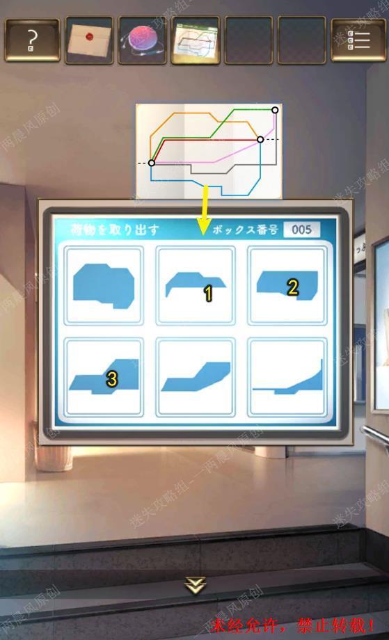 16.在右侧场景点击最后方的储物柜,根据线路图中线条围成的图案解开储物柜的密码,拿到【CD盘】和【美工刀】。16 16.1