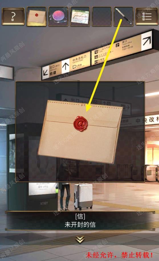 14.点击右下角的箭头进入右侧场景,在垃圾桶中拿到【信】。14