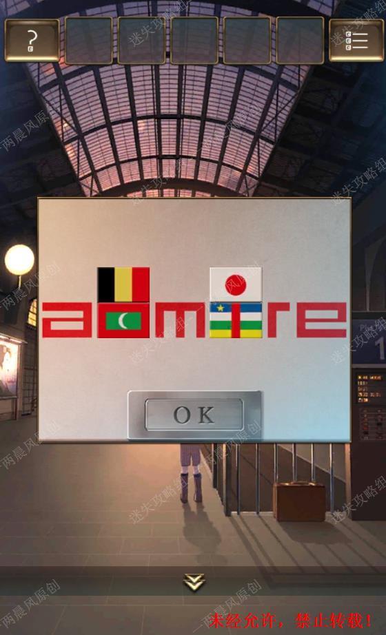 43.用刚得到的【小国旗】在密码盒上拼出“admire”,得到【钥匙】。43