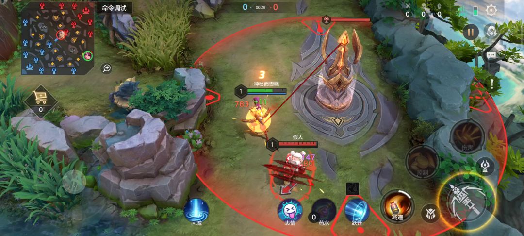技能取消方式,我建议滑至取消按钮,滑出指定距离(滑到超出技能范围的位置),不是很方便。每个技能的范围不一样,就需要你滑的位置不一样,很容易出现滑到的距离不到位,容易把大招点出来。滑至取消按钮,固定方便,不麻烦。(视频3)