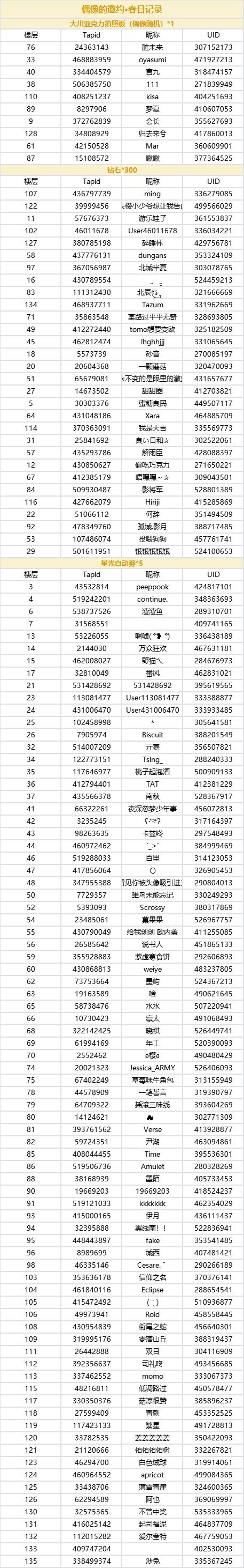 制作人们久等啦,让我们恭喜以下幸运的制作人们!奖励会在7个工作日内发放到制作人的礼物盒中,请注意查收~!