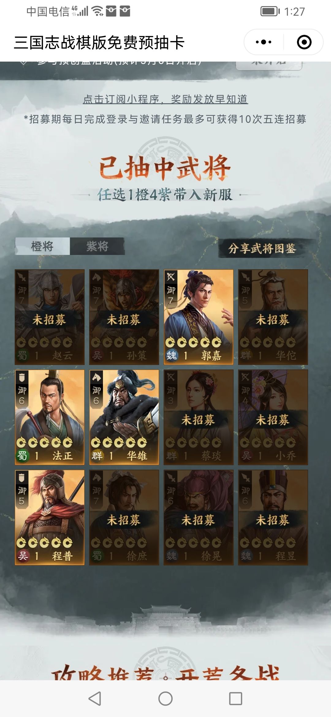 个人认为郭嘉、赵云、华雄都不错,可根据自身准备组建的队伍进行选择,而吴国两名武将因为都非核心输出型武将所以为次选。