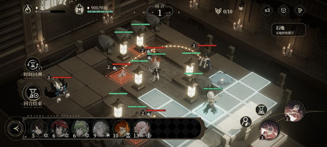 我们需要守卫麒麟灯,指挥角色打败小怪,一旦麒麟灯全部失守,即为游戏结束。游戏也对上阵的人数进行了限制,左上方有一个初始灵爻数,每个人上阵都需要消耗一定的灵爻,击杀敌人可以获得灵爻。而且角色只能放在麒麟灯周边。
