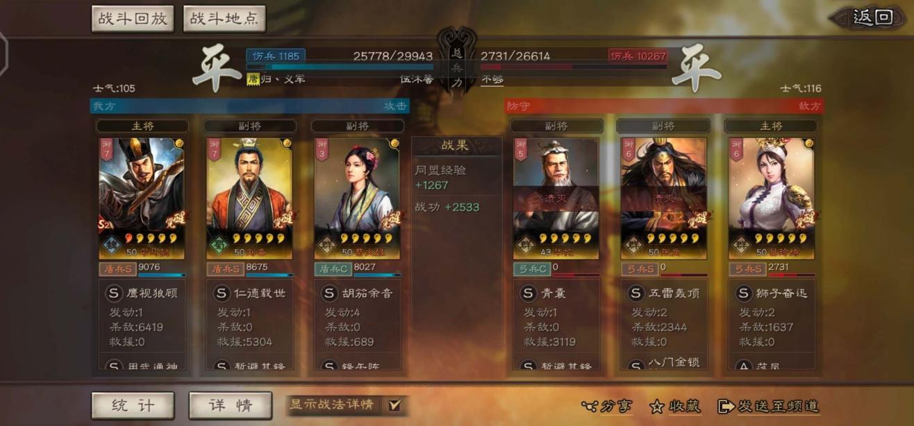 在打蜀国的五虎上将时也可以顶住五虎上将的输出,以极少兵损拿下胜利。