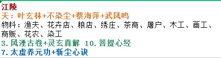 部分角色功法搭配及获取: