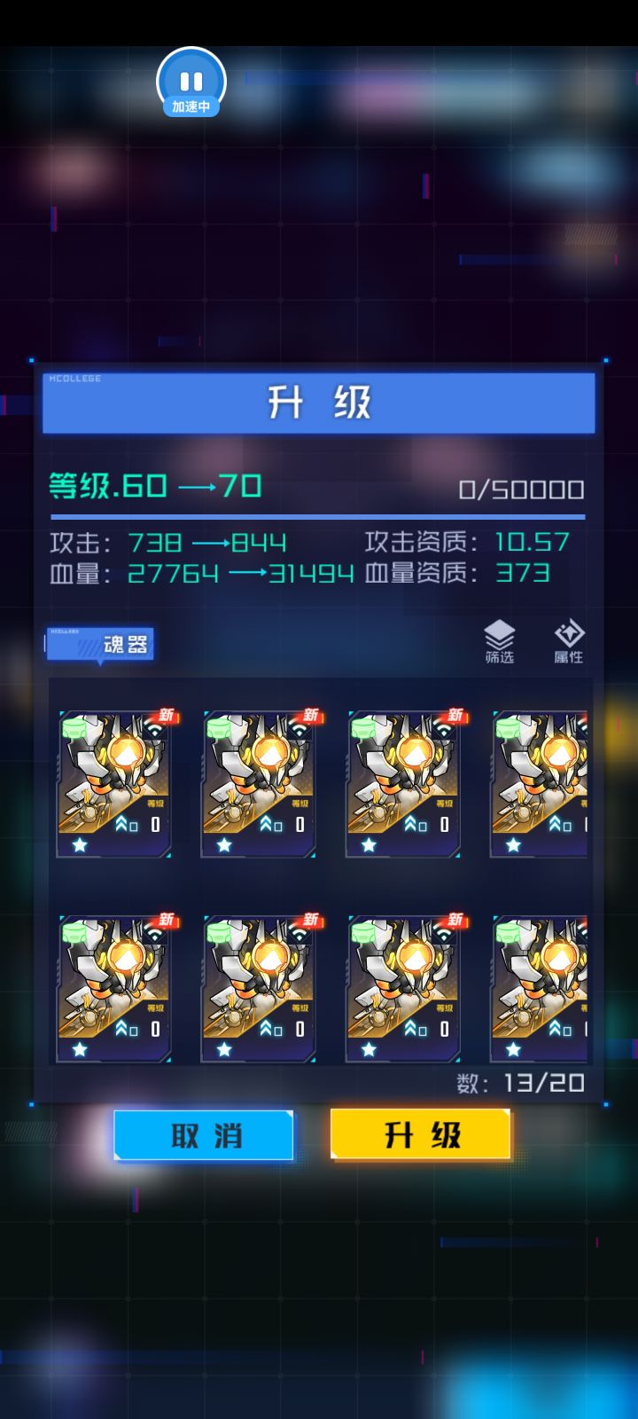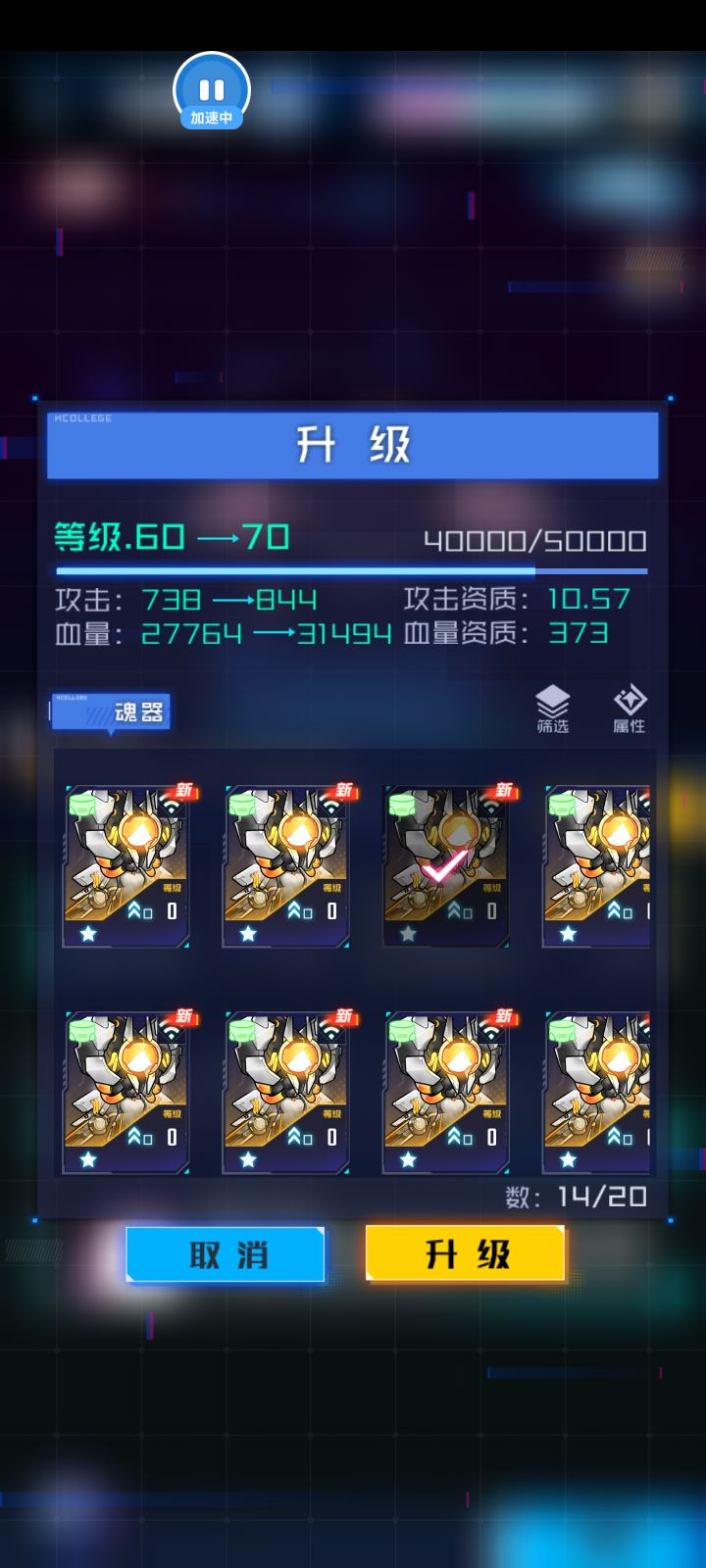 给大家提个醒节省资源,拉满魂器如果经验正好到70级0,那么自动选择时也会多选一个狗粮从而导致浪费,大家拉满经验时可以注意一下。
