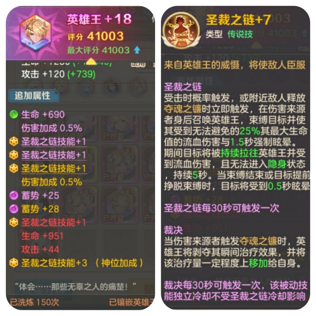 英雄王这个传说符文自从技能圣裁之链改版后在pk中着实恶心的要命,确实很强,触发条件是受到攻击概率触发,束缚目标受到持续流血伤害的同时,还会持续拉扯目标,被拉扯的目标不能进行隐身,更无法解控,只能强制挣脱束缚或者等束缚结束,强制挣脱会被眩晕0.5秒,等时间结束会眩晕1.5秒。不管你怎么选择,英雄王都能对你造成伤害和控制,并且触发条件无可避免。