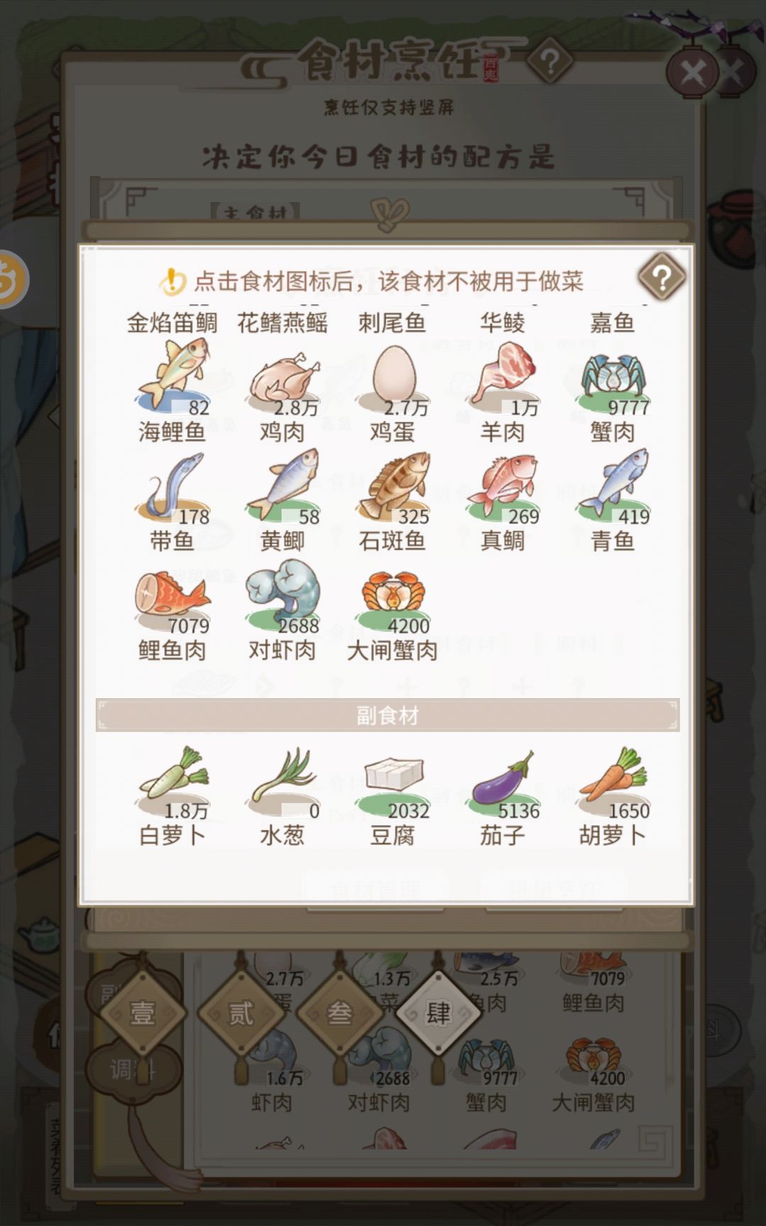 刚买的食材打开客栈烹饪就没有了!