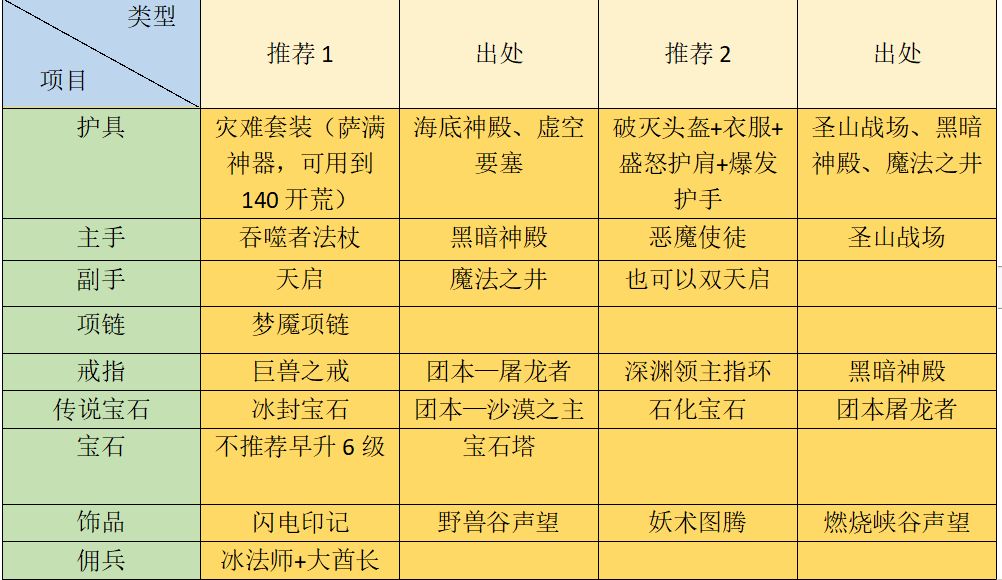属性选择:4闪避4暴击5全能3回复2急速,标准18条,两个戒指加起来等于2条属性,建议和闪避暴击凑满(闪避急速暴击属性无加成上限40%,等级乘以8即满),100级阶段增强萨建议近战,石爪图腾+寒冰震击+冰封宝石BOSS基本抬不起手,水盾雕文带回血,靠天启的被动打伤害。反伤可以带个奶佣兵,伊利丹一阶段末(6万血左右)控制,再出来召唤召唤物秒掉