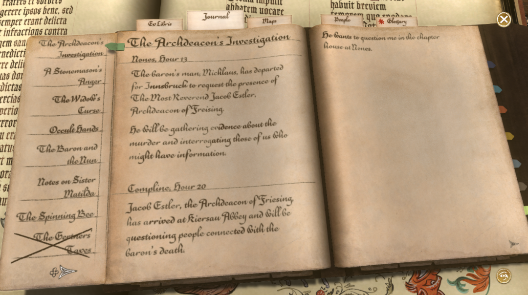 可一日,前来拜访修道院的男爵突然被杀——Andreas的良师益友被指为凶手,玩家需要四处收集证据,证其清白。