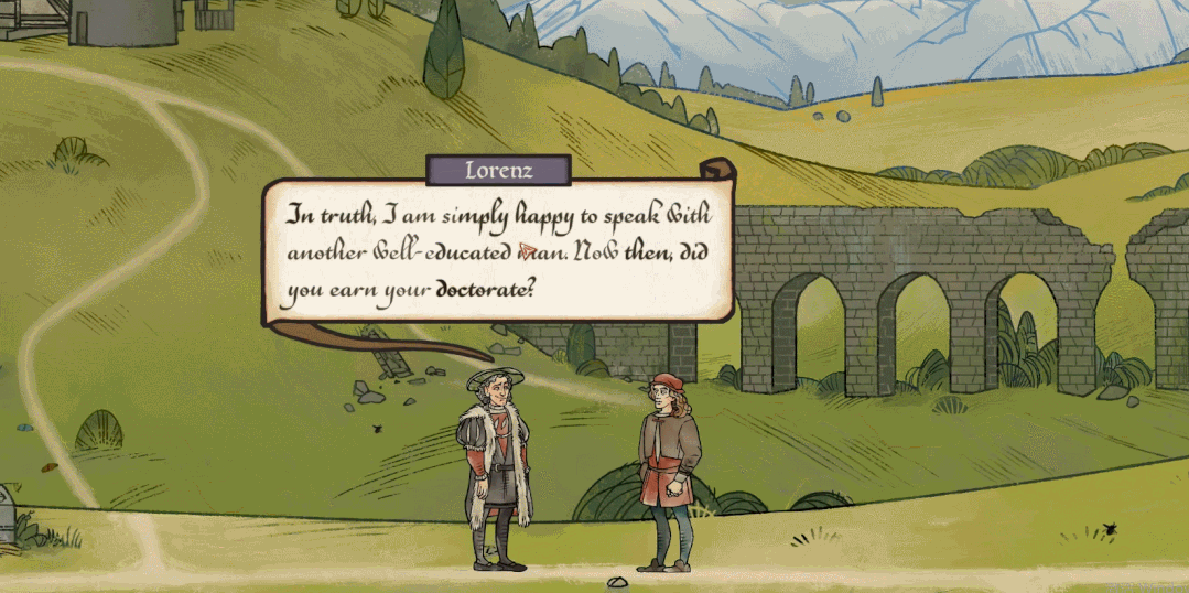 但在《Pentiment》,角色的身份与差异,依靠文本字体来区分。动画导演Cathy Nichols提到,他们希望展示出一种特殊的交流体验,即,角色与我们交流的每一句话,也可以视为他们亲笔所写的一封封信。