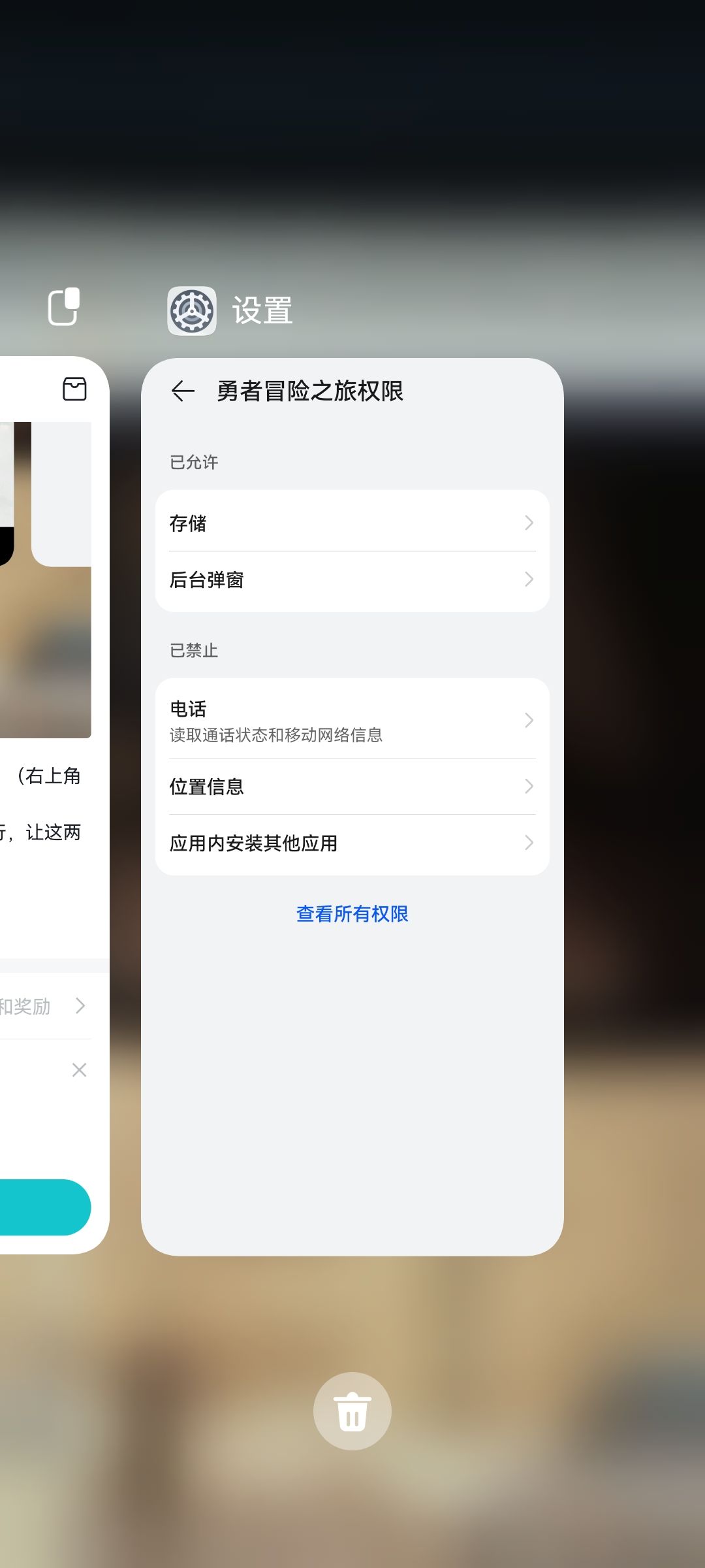 然后在权限管理里允许读取储存信息和后台弹窗