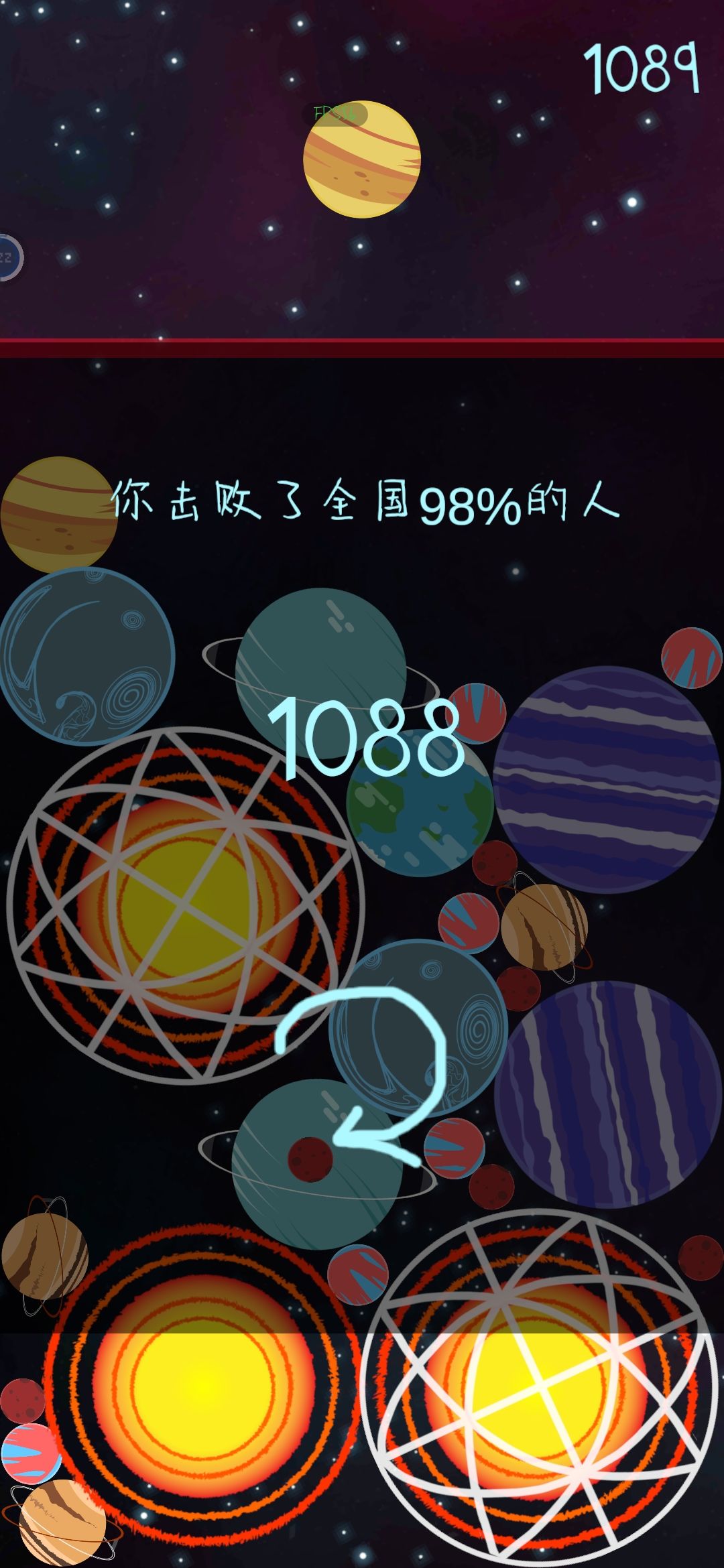 明明没有碰到红线也结束游戏了,那个小红球球在星球里面了