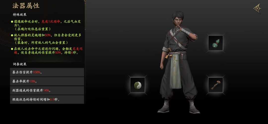 没吃药,能锁轮盘估计好过,轮盘到处飞总是走着走着就不动了...下面是法器属性