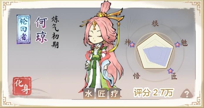 何琼作为一个辅助轮回者,拥有有水灵根适合装配水系技能。不仅擅长生产制作,同时还带有治疗可以持续帮助回复在战斗中队友的血量。是武神殿常用的角色之一,可以帮助队友抵挡大部分伤害,同时具备着非常完善的灵巧度可以很好的躲避攻击。