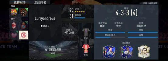 (图:SQB对战选择界面,可以看到对手的真实地理位置、阵容评分和战术风格。每周玩家还可以通过对战周最佳和明星玩家阵容的形式获取更多积分)