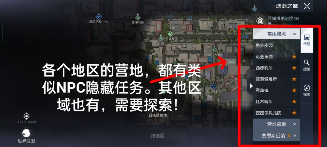 3.我们可以去各个地区的安全营地各个NPC都有可能出现隐藏任务!