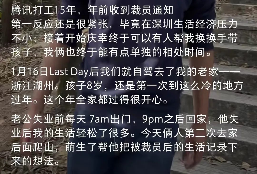 根据其妻子描述,被毕业裁员可能是如下几个原因:最后被裁以及不再尝试活水(转岗)的原因是: