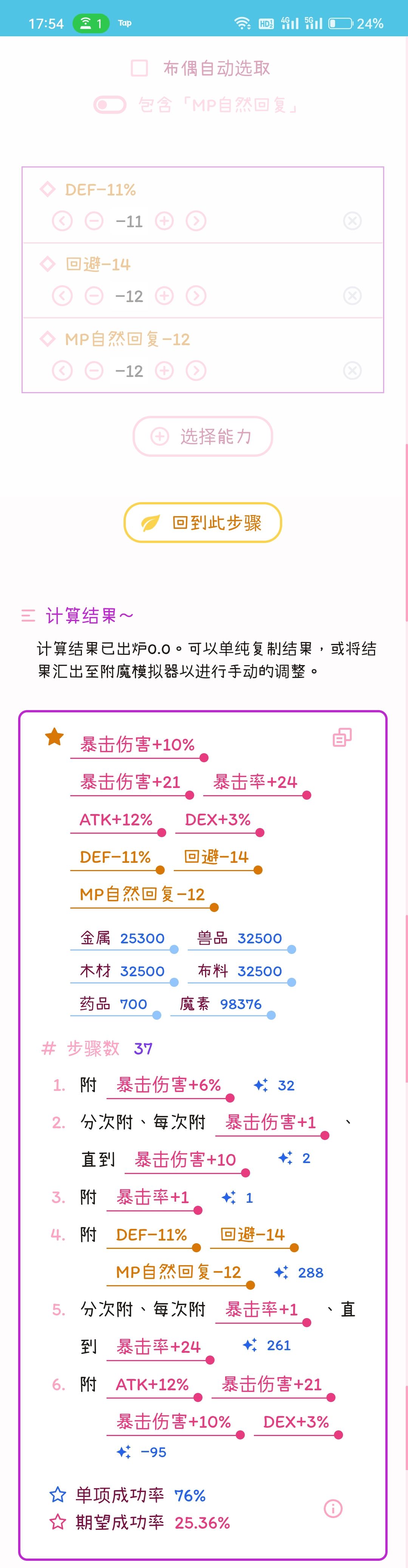 但还是注意一下,附魔只退单回时最好还是退mp自回,否则会白白消耗素材,毕竟退单回时俩成功率一样的_(:з」∠)_