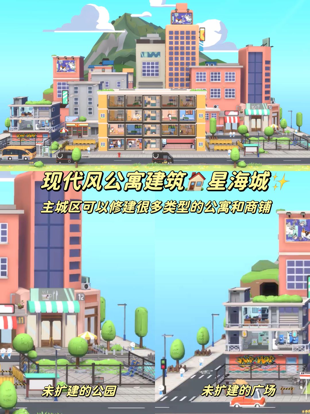 玩家除了可以修建不同类型的公寓房间和商铺之外