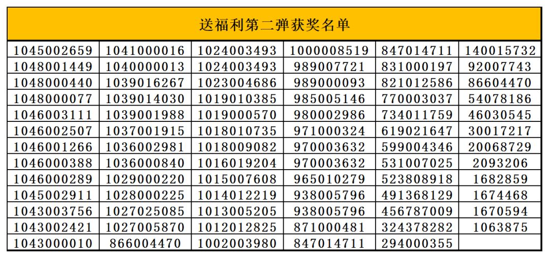 活动奖励名单公布:
