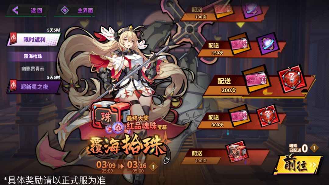 活动期间,在魂珠配送卡池消耗配送道具,完成配送任务即可领取奖励。