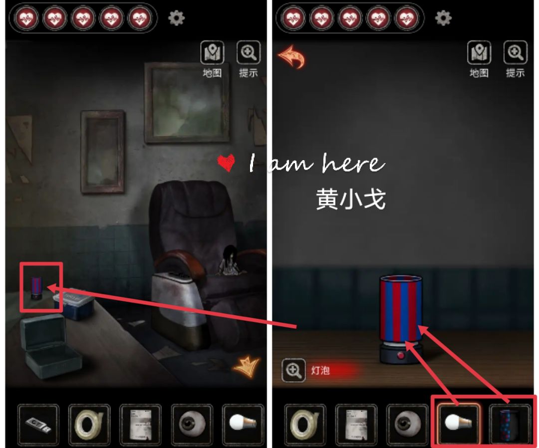 18.点击桌子上的灯,放入【灯泡】和【罩子】